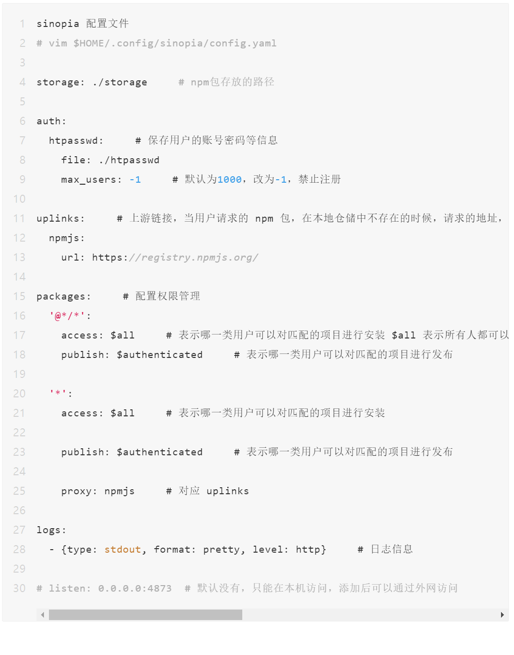 其中 Sinopia 是一个部署简易的可以实现github仓储私有化的npm组件。