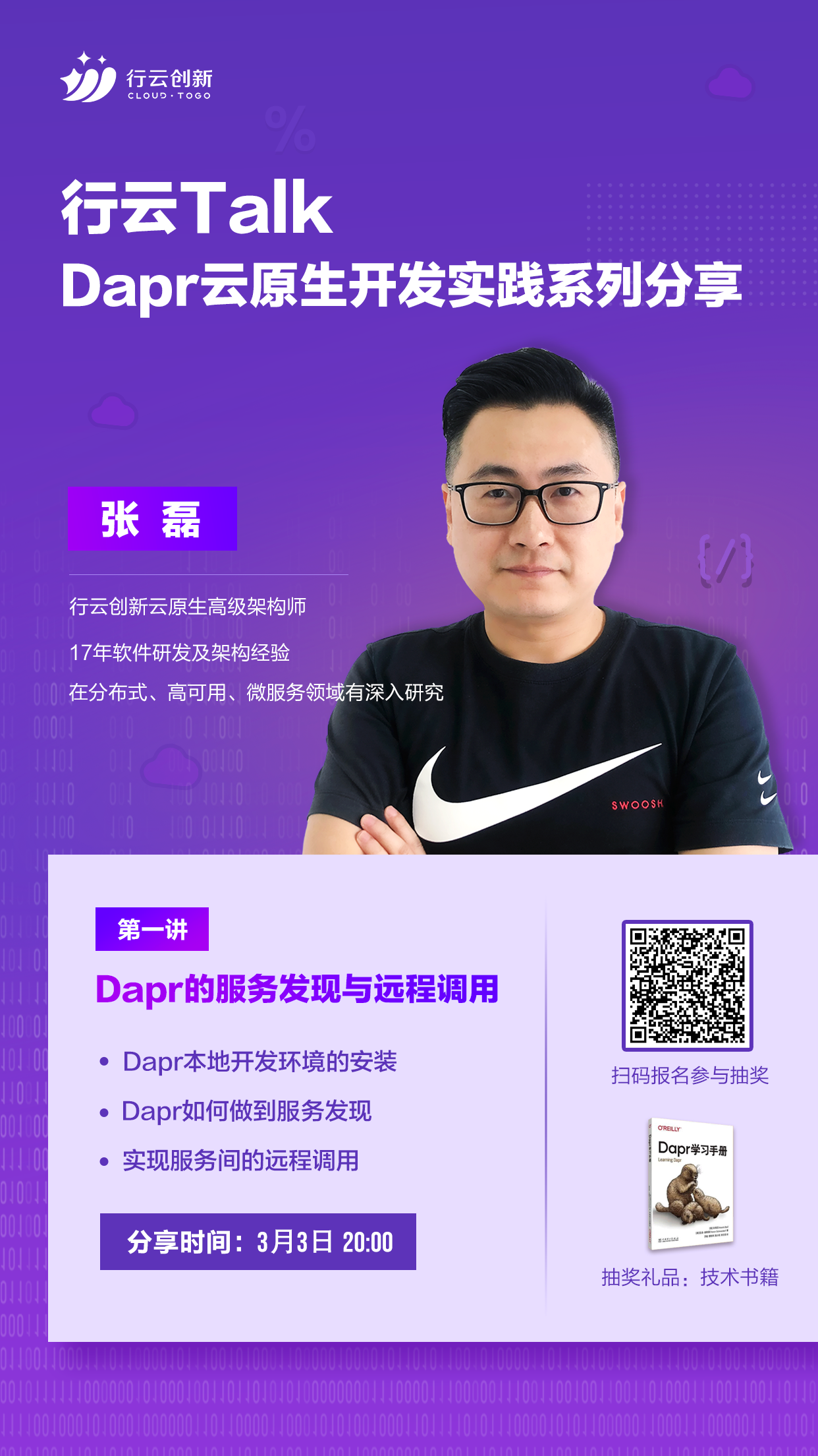 3月3日20:00,Dapr云原生开发实践系列第一期内容即将开讲,JIUYOU九游创新云原生高级架构师张磊分享:Dapr的服务发现和远程调用,介绍Dapr本地开发环境的安装,Dapr如何做到服务发现以及实现服务间的远程调用。